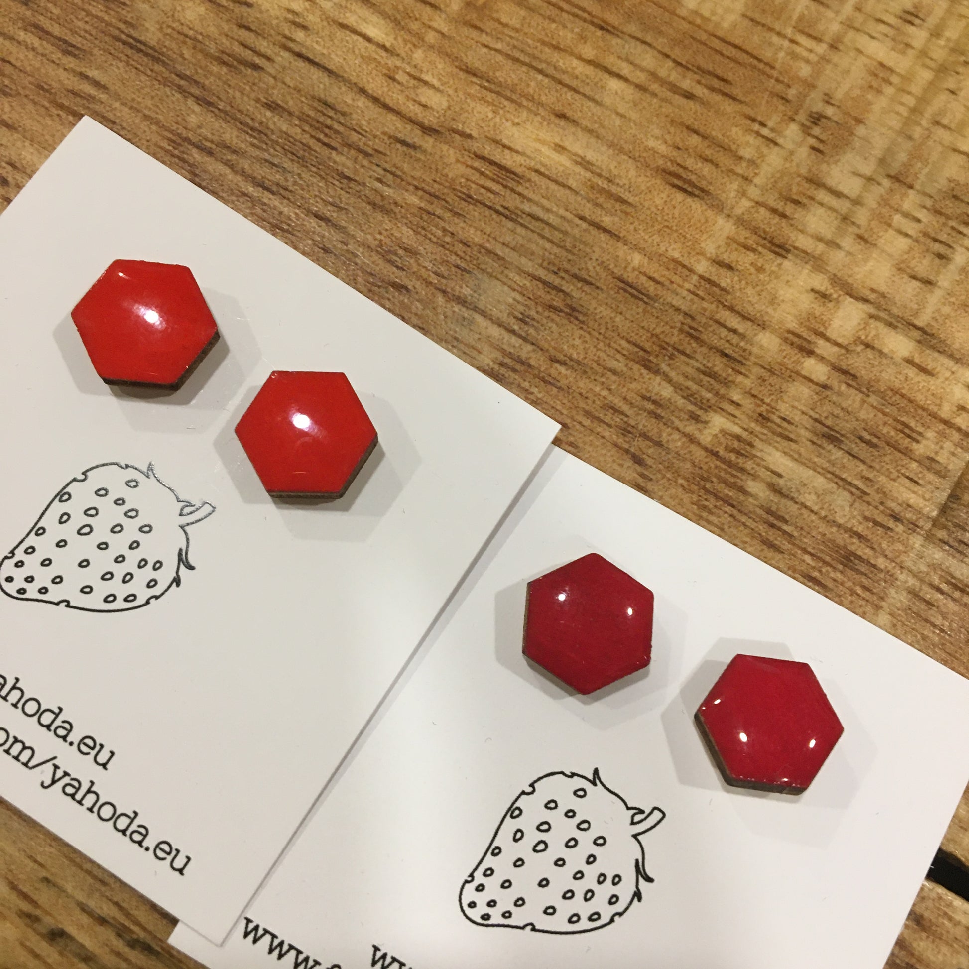 Náušnice - hexagon - Červená